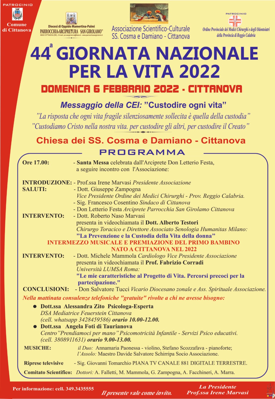 L'Associazione scientifico-culturale Santi Cosma e Damiano di Cittanova è da quasi vent'anni che opera nel Territorio, in sintonia con la Parrocchia-Arcipretura San Girolamo, curata dal Parroco don Letterio Festa e si ispira ai Valori professionali e spirituali dei Santi suddetti. E’ stata fondata dalla Prof.ssa…