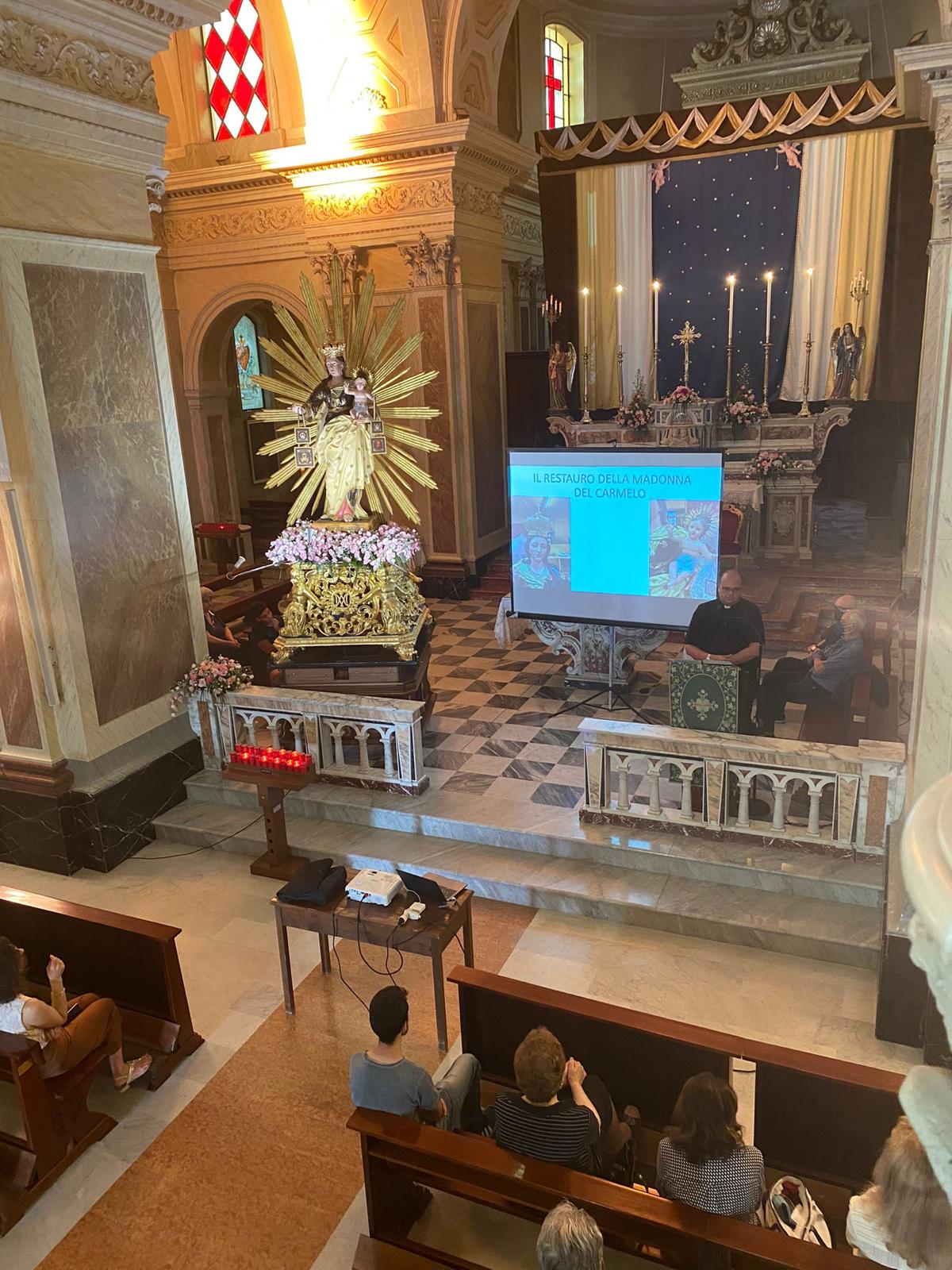 L’intervento di restauro della statua di Maria SS. del Carmelo è stato realizzato nel contesto di un articolato e complesso progetto di conservazione e valorizzazione delle numerose opere d’Arte custodite dalla Parrocchia che si va realizzando di anno in anno per permettere ai fedeli e al territorio tutto di continuare ad ammirare questi preziosi segni della nostra tradizione religiosa e della nostra storia e cultura